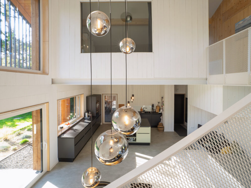 sondern nach oben in das Volumen des Hauses gewandert ist und so dem Wohnraum ein spannendes Profil gibt.