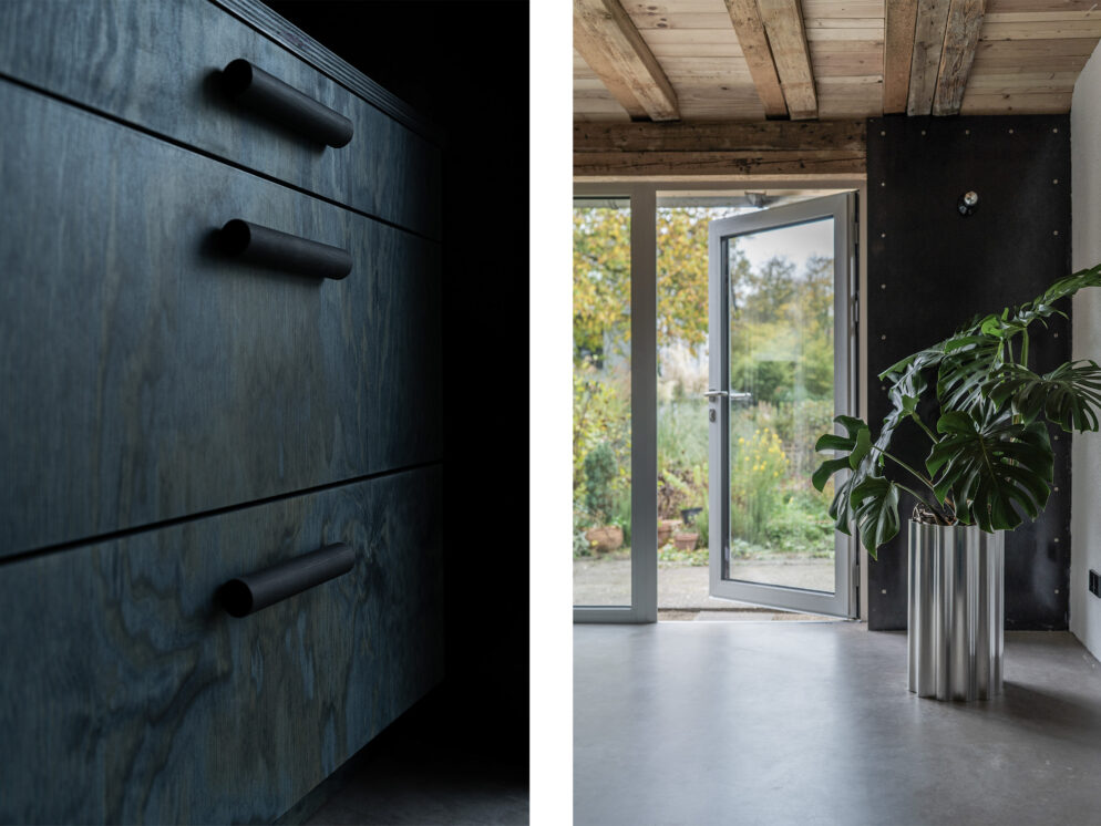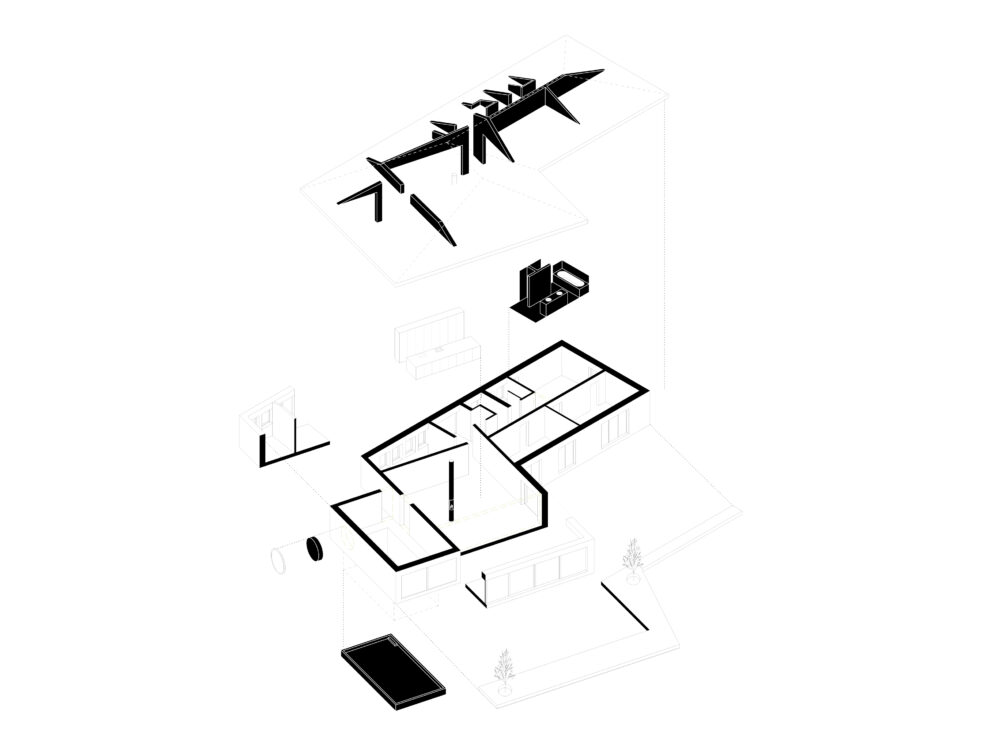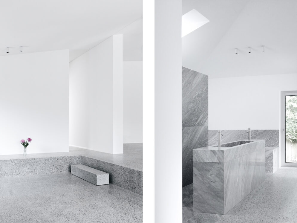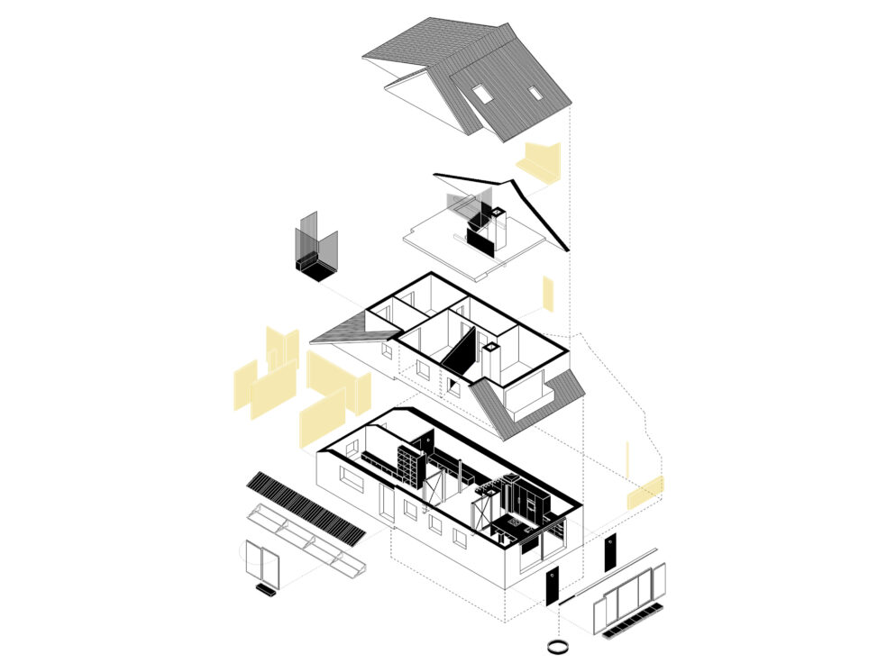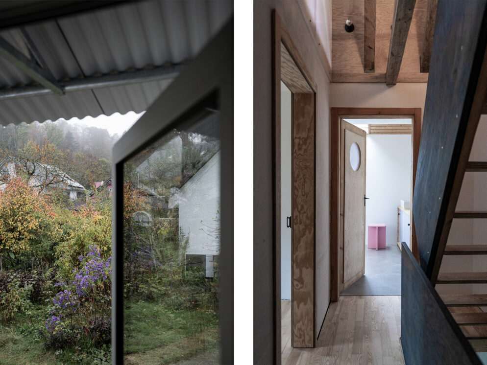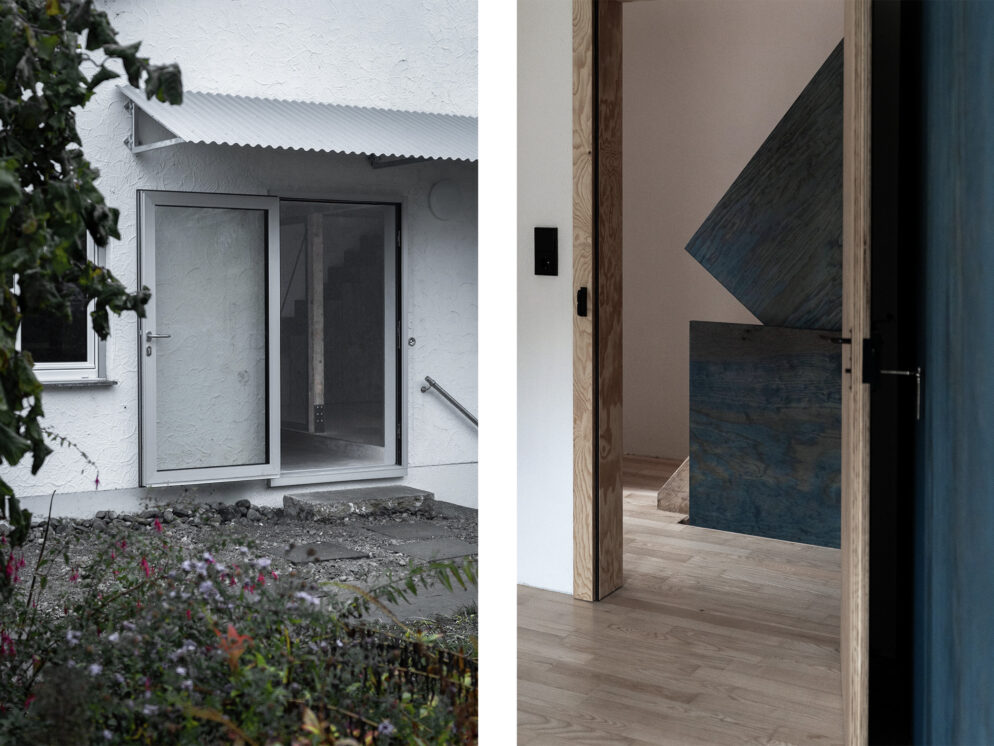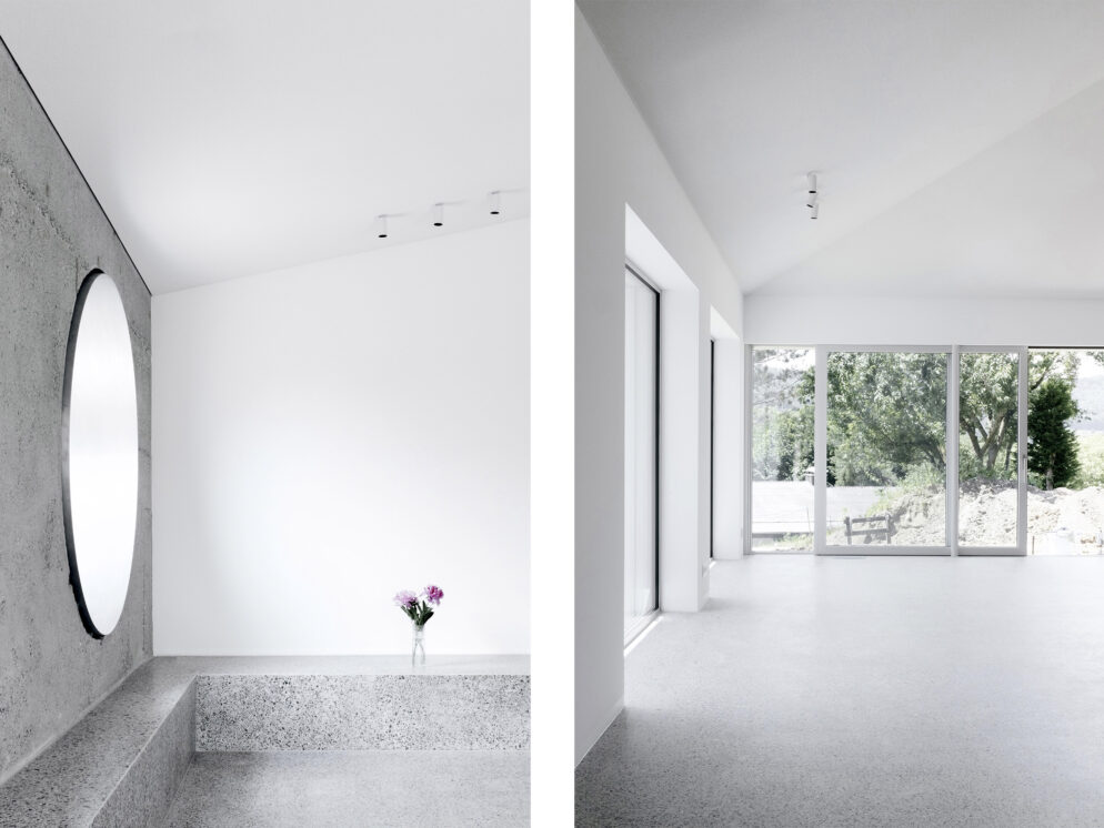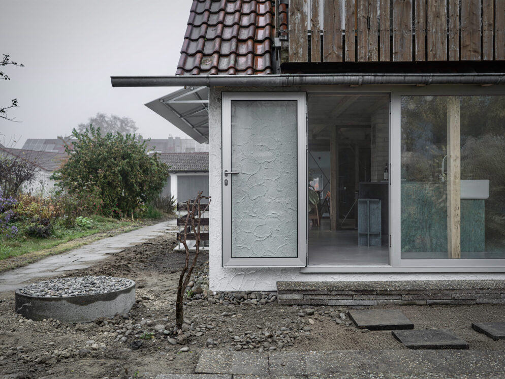 Um-/Weiterbau eines Bungalows – Das Gebäude wurde 1972 am Ortsrand einer kleinen Gemeinde unweit vom Bodensee erbaut. Die BauherrInnen konnten vom Erhalt der vorhandenen Struktur überzeugt werden. Der Umbau versucht mit gezielten Eingriffen bestehende Qualitäten hervorzuheben. Methodisch wurde mehr weggenommen als hinzugefügt. Ziel war es, robuste Räume zu schaffen und die Schönheit des Bestands aufzudecken.