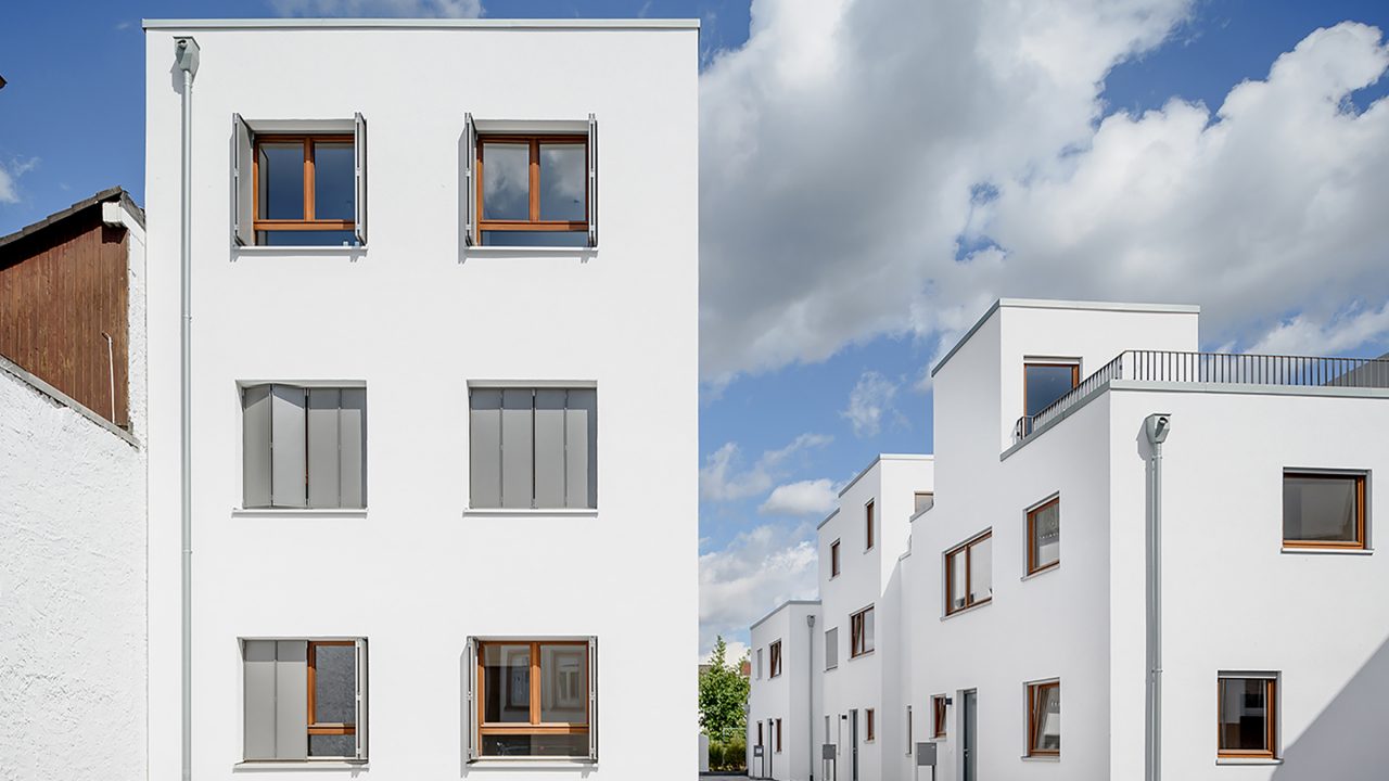 Im Hinterhof eines Mehrfamilienhauses in der Bad Homburger Innenstadt enstand dieses Haus in Dickholzbauweise.