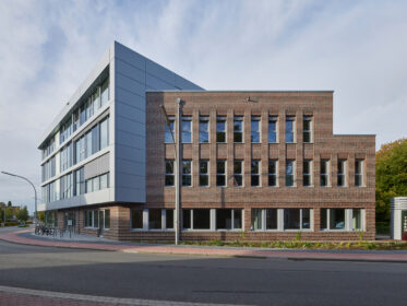 Der Läuferverband der Fassade wird zum ästhetischen Thema des Gebäudes und bildet geschossweise kleine Vor- und Rücksprünge aus. Zusätzlich sind die Öffnungen des Gebäudes unregelmäßig in der Fassade angeordnet, was das Gebäude in seiner Geradlinigkeit bricht und ihm einen individuellen Charakter verleiht.